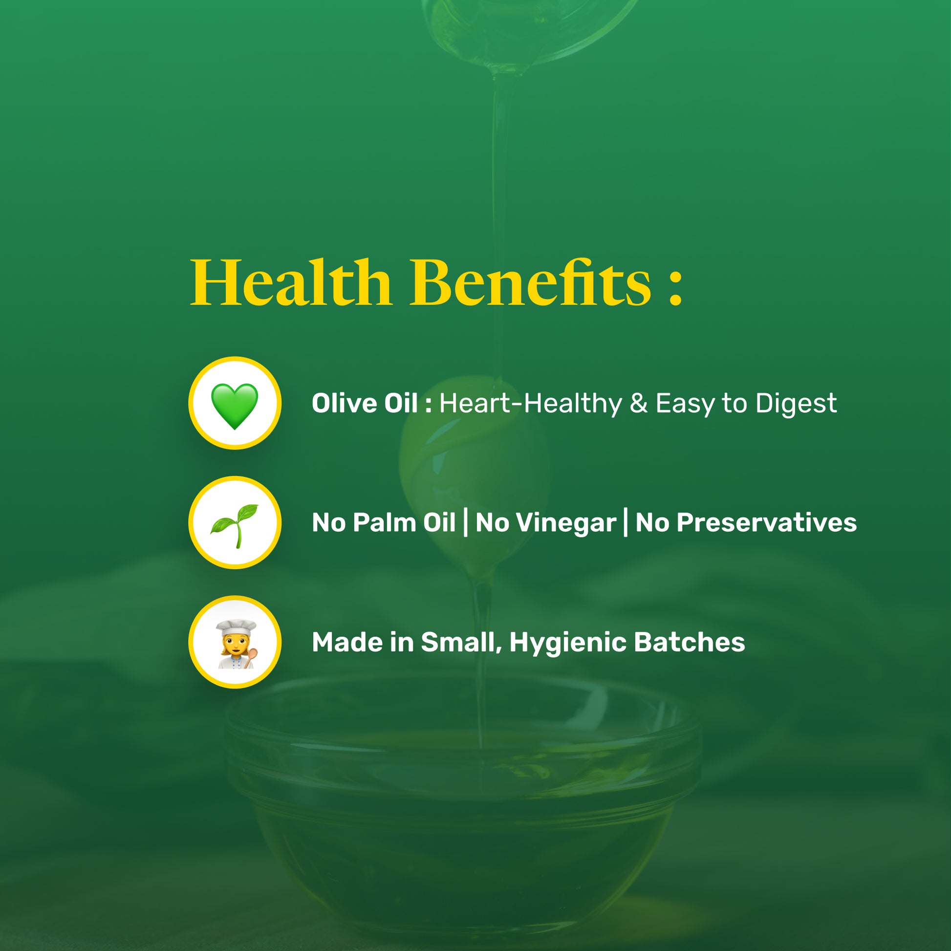 No added preservatives | Made in Olive Oil | 100% Vegetarian